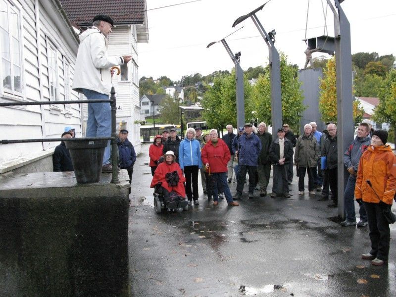 Turen vart omtala ved eit innslag i Sunnhordland eit par dagar før. 50 – 60 personar var med på turen. Frammøtet var i Borggarden. Tore Lande Moe fortalde om dei historiske røtene til tettstaden Leirvik, først frå trappa til Hagerupshuset og seinare med stopp ved sparebankbygget og krysset Borggata – Jens Hystadvegen og Turnhallen.